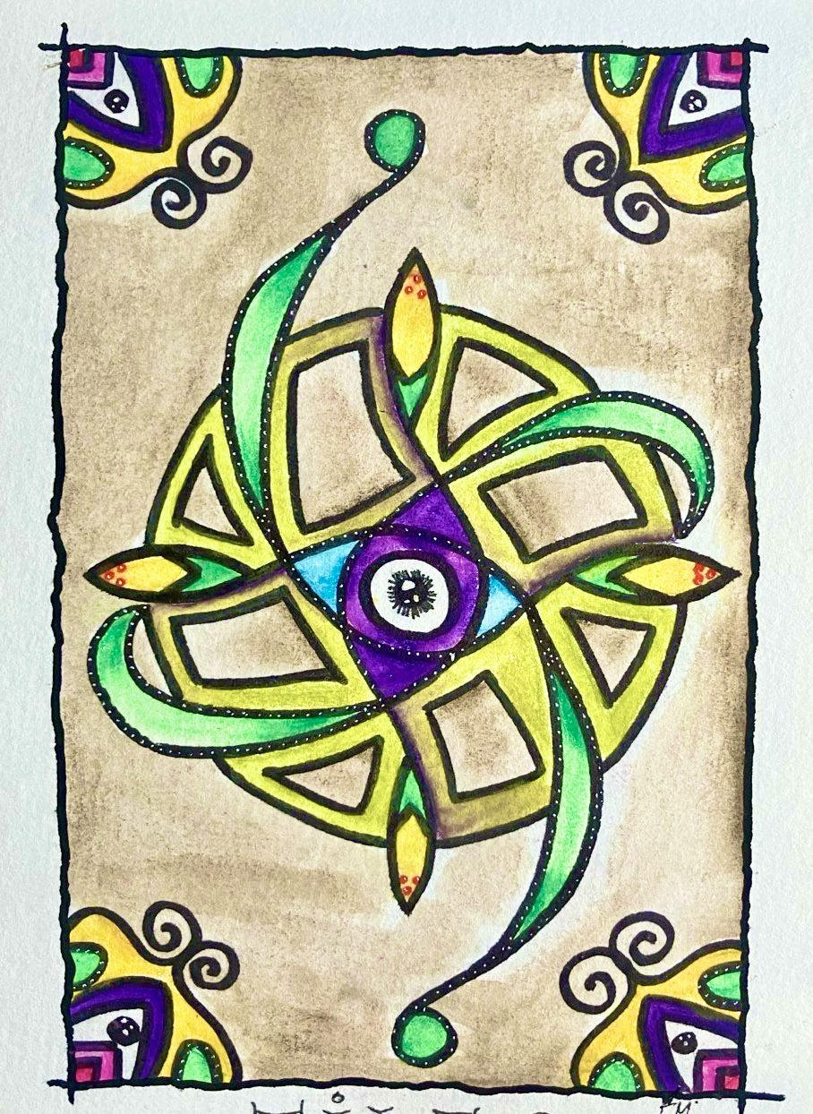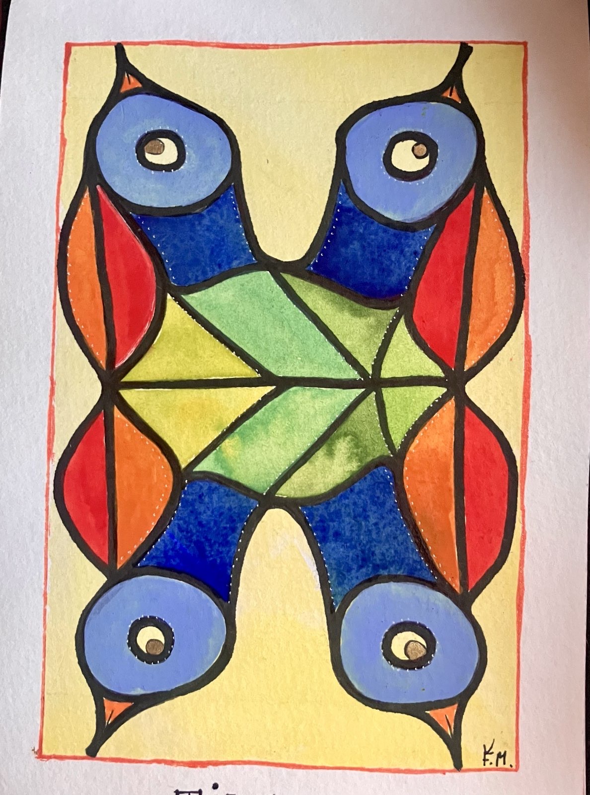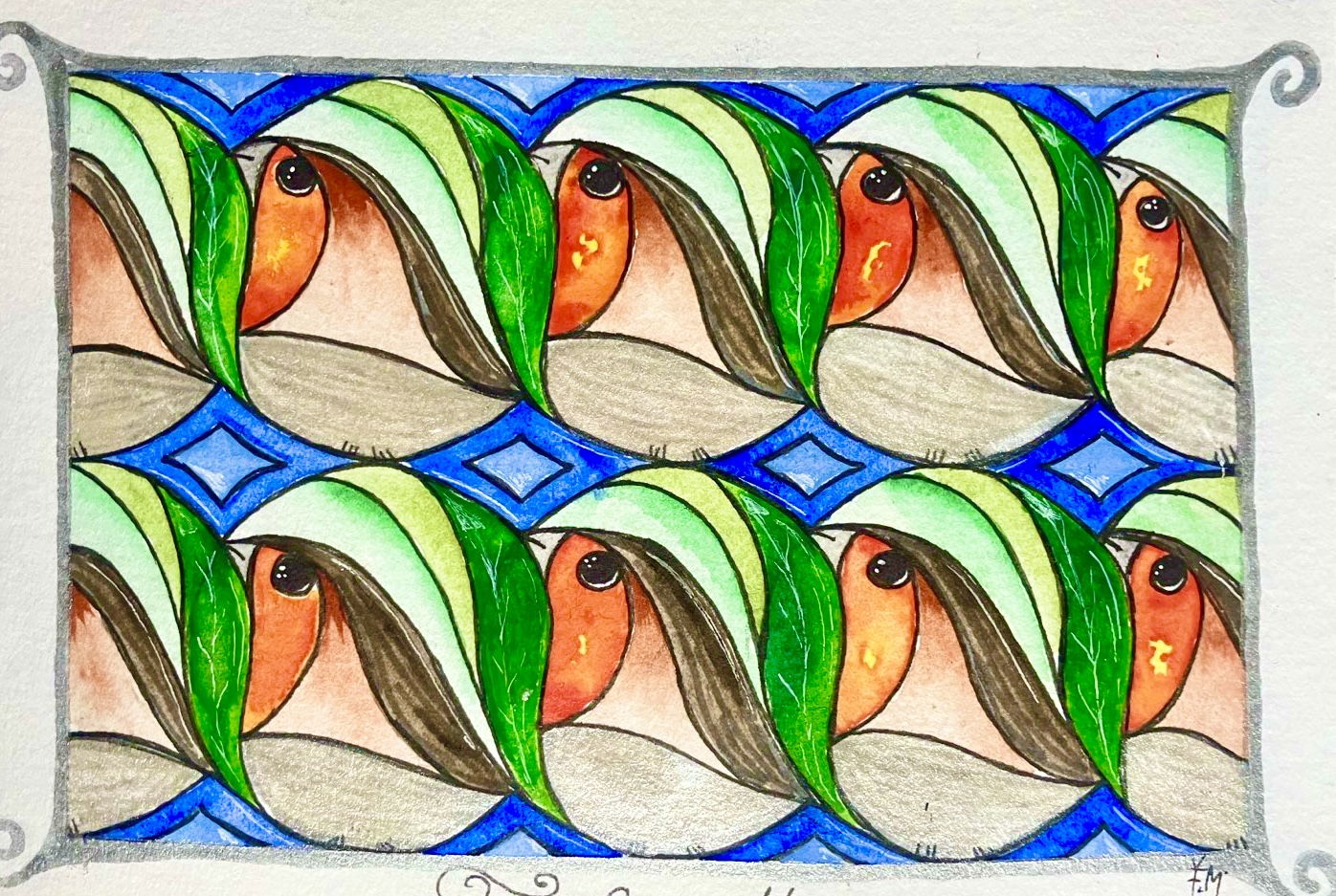 Each geometric tile has been intuitively drawn and translates an observation of colours, pattern, soundscape of Nature, and the fundamental connection between our species and the recognition of nourishing systems of the natural world.